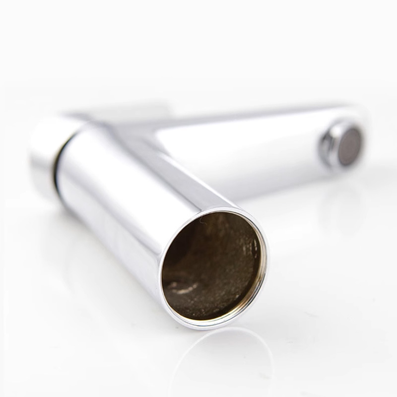 Functional and stylish pull-out bathroom faucet. Features a retractable sprayer for easy face/hair washing and an integrated anti-splash aerator. Solid brass build with a durable baked paint finish for modern vanities.