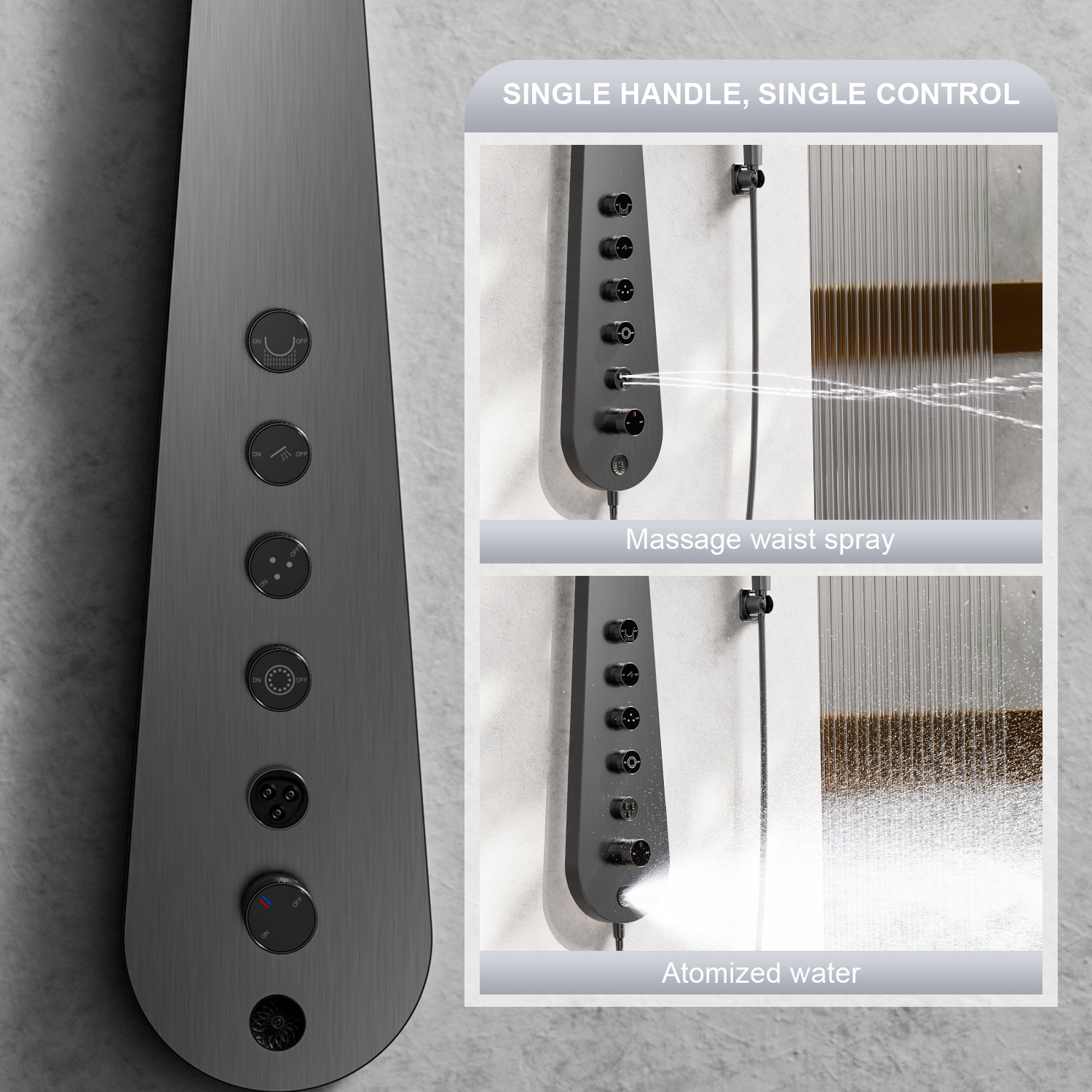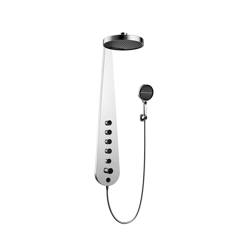 A premium bathroom shower solution featuring a full brass body, thermostatic temperature control, and a sleek concealed design with a mirror-finish rainfall showerhead and button-operated functions. Ideal for modern hospitality and luxury residential projects.