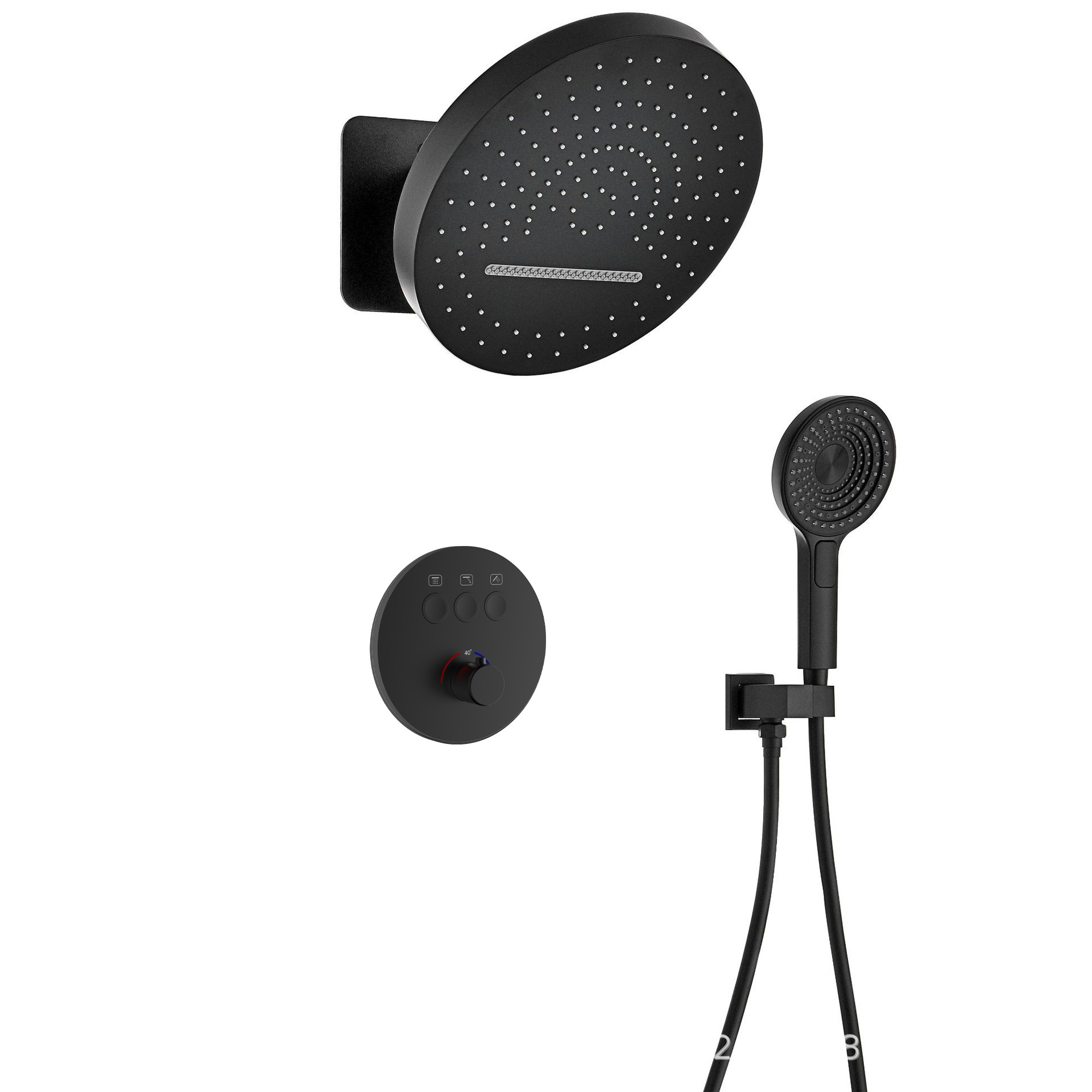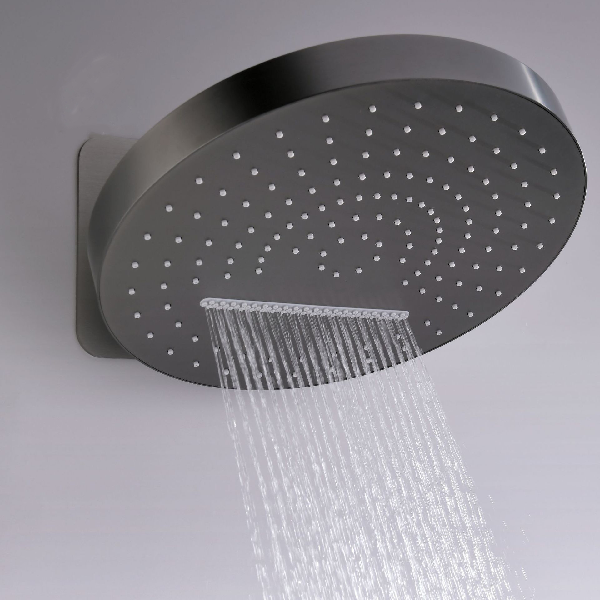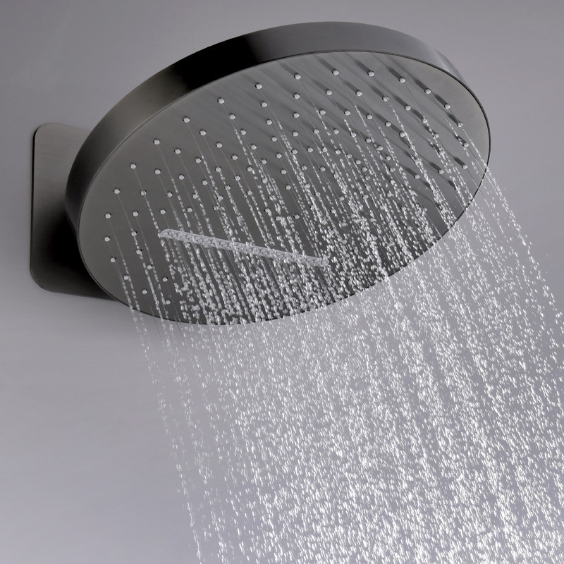 An elite bathroom solution featuring a thermostatic valve to maintain constant water temperature. The ‘Flying Rain’ showerhead provides a spa-like waterfall experience. Its recessed, button-controlled design offers a sleek, minimalist aesthetic while the mirror-finish brass ensures long-lasting luxury.