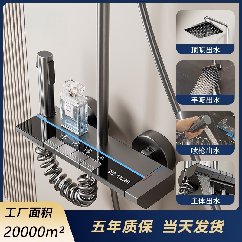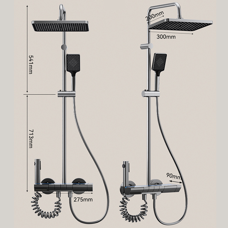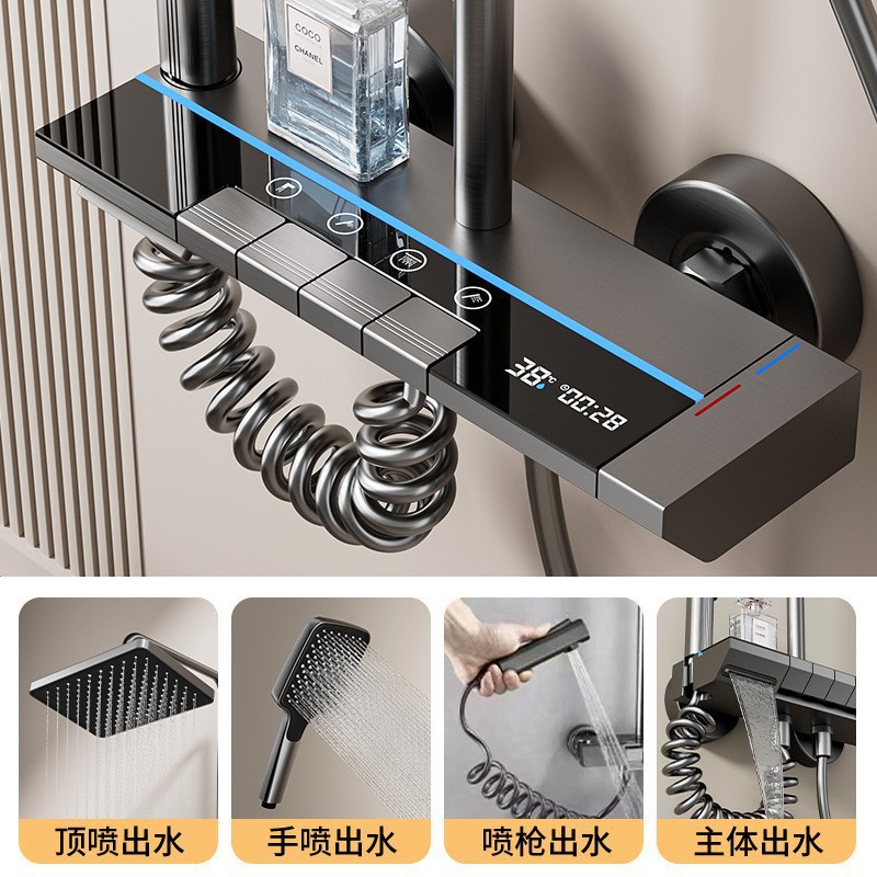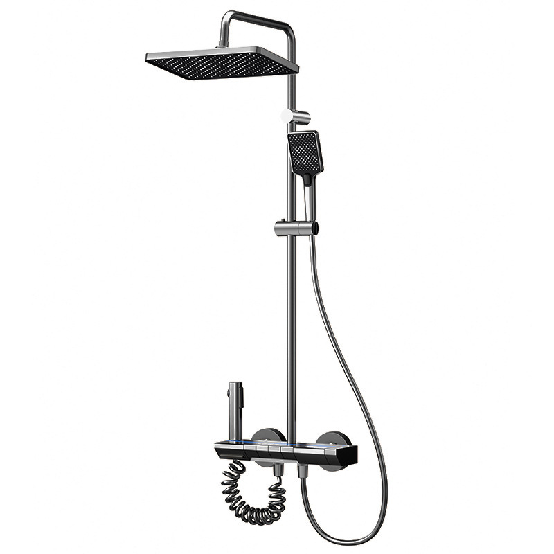 Transform your bathroom into a modern spa with our Luxury Digital Display Piano Key Shower System. This high-end fixture features an integrated hydroelectric digital screen that displays real-time water temperature for a safe and comfortable shower experience. The innovative piano key control system allows you to effortlessly switch between the overhead rainfall shower, the multi-functional handheld spray, and the lower tub-filling faucet.