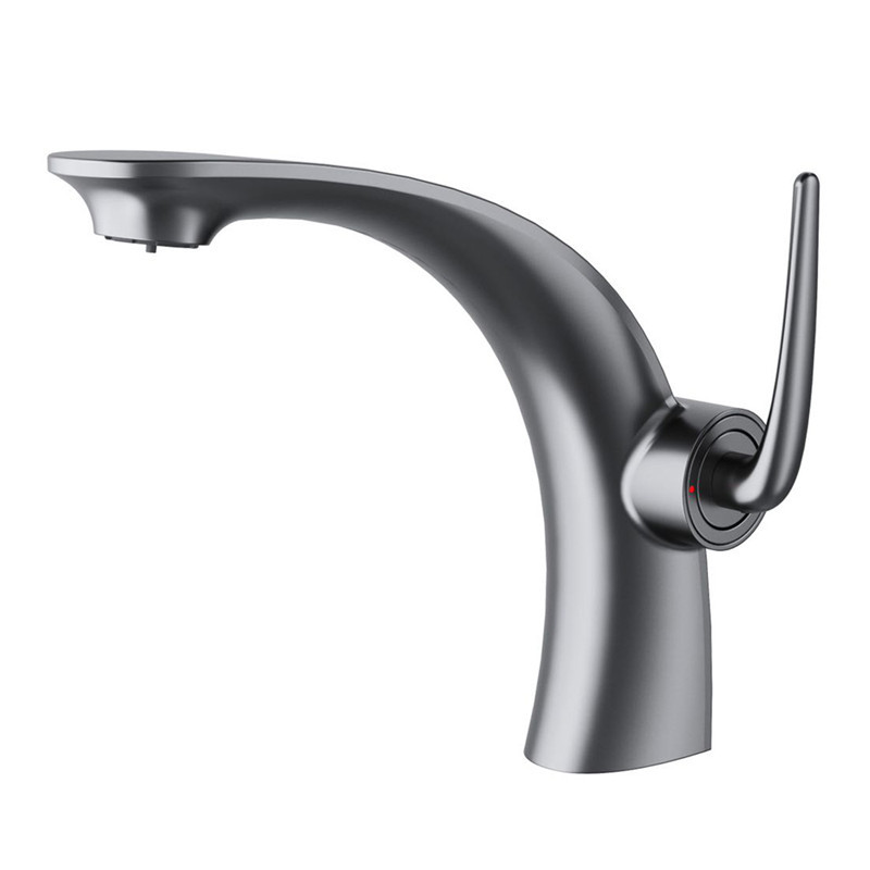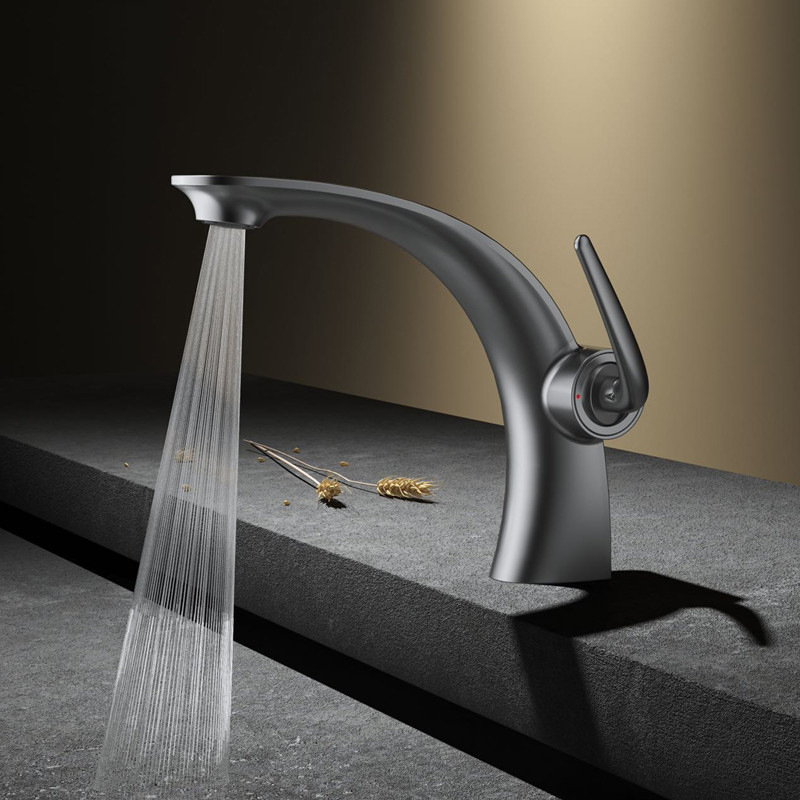 Constructed from premium solid copper with a sophisticated gunmetal grey finish. Designed for bathroom cabinets and washbasins, this faucet offers a sleek minimalist aesthetic with durable ceramic cartridge technology for smooth hot and cold water control.
