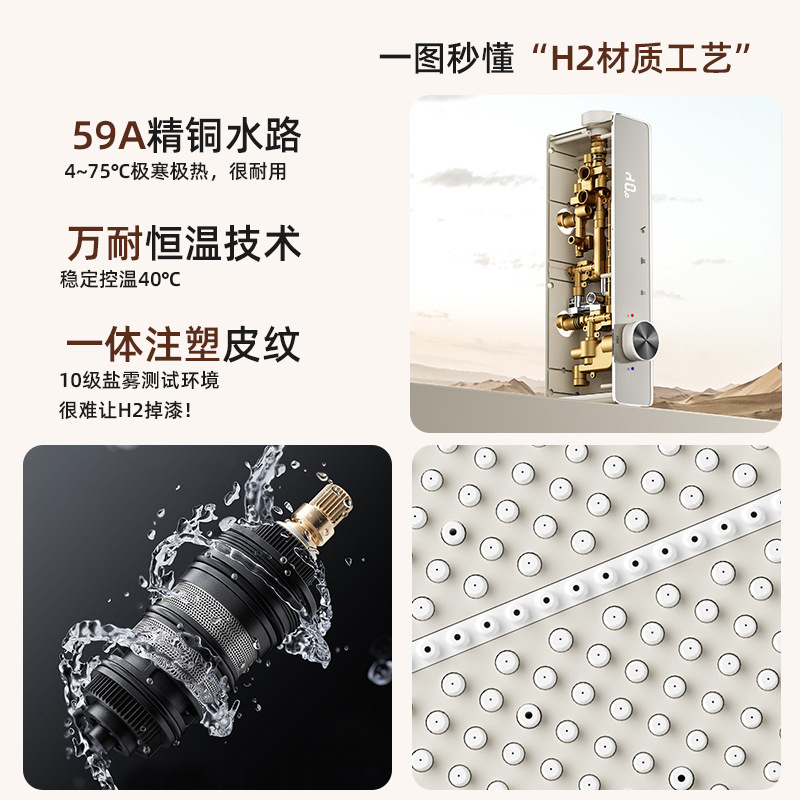 Experience the ultimate in showering comfort with our Modern Digital Display Shower System. This high-end fixture features an integrated hydropower digital display that shows real-time water temperature without the need for batteries or external power. Designed with a built-in large storage shelf for all your bathroom essentials, this system combines luxury, organization, and safety. Crafted from premium copper and brass with a multi-layer corrosion-resistant finish (available in Cream White and Gunmetal Gray).