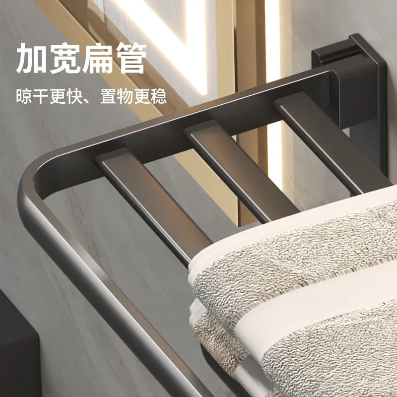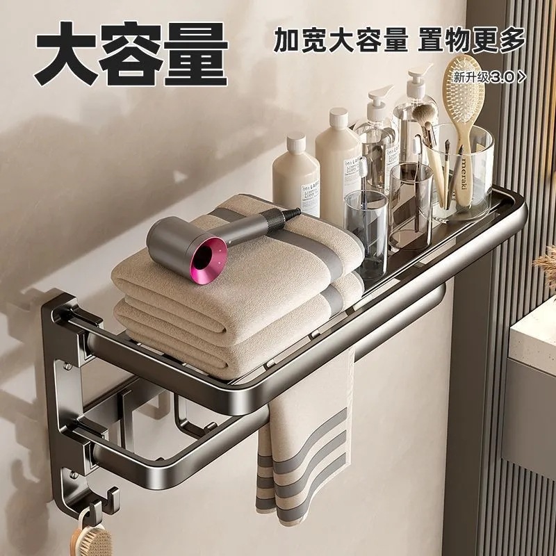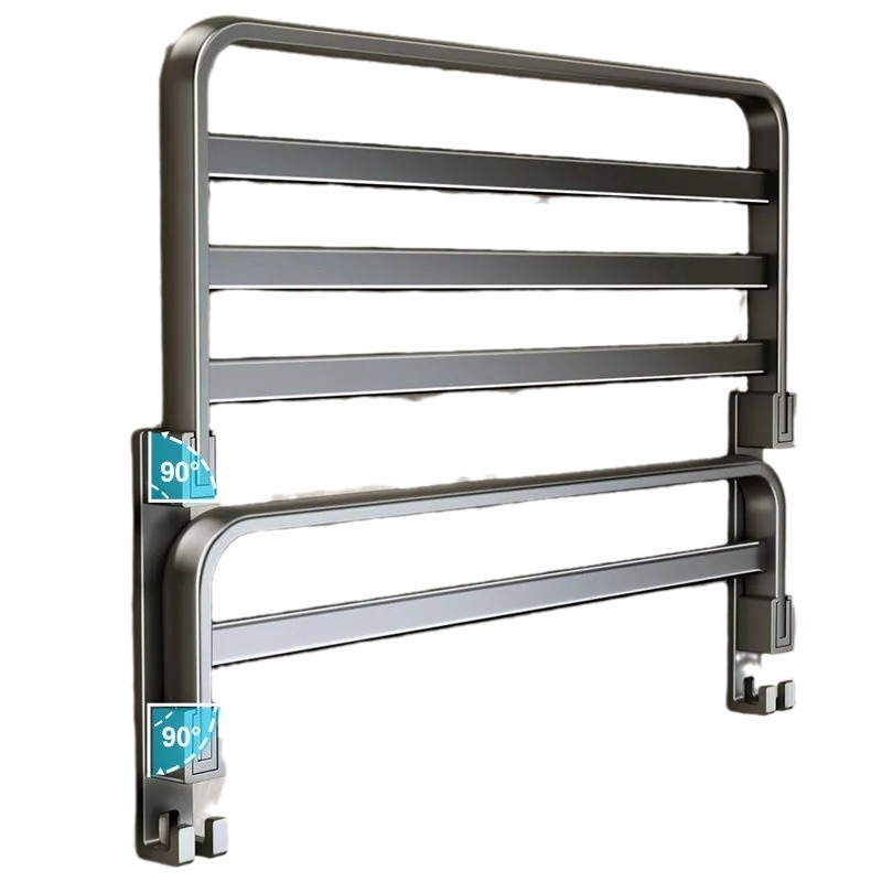 Rust-proof space aluminum towel rack set with a drill-free installation system. Features a sleek gunmetal grey finish, perfect for modern bathrooms. Durable, light-weight, and high-load capacity for bathroom organization.