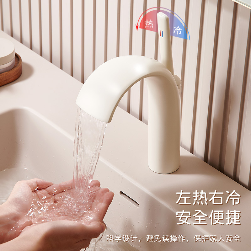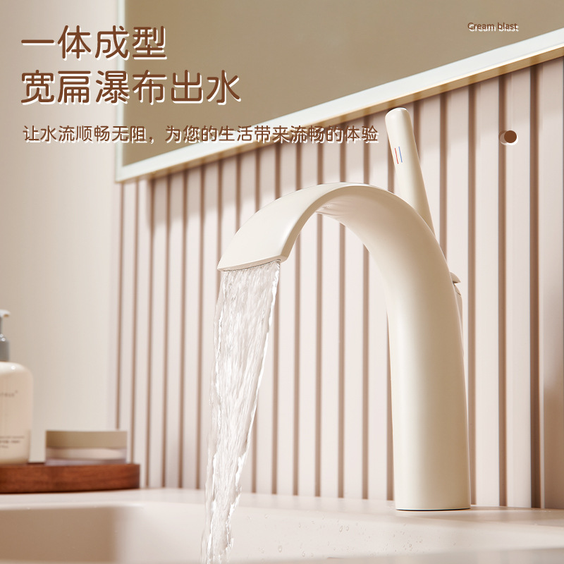 Introduce a touch of modern elegance to your bathroom with our White Luxury Waterfall Basin Faucet. This premium fixture is precision-engineered from high-purity all-copper (brass), providing exceptional durability and lead-free safety. The unique waterfall spout design creates a smooth, gentle water flow that minimizes splashing and adds a serene, spa-like atmosphere to your washstand.